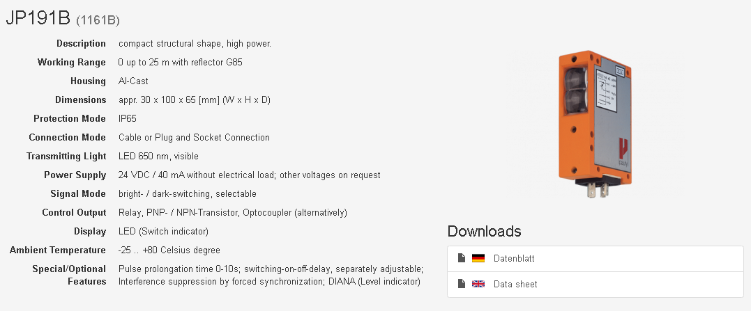 Cảm biến rào cản phản xạ tín hiệu quang - Reflex Light Barriers JP191B Pauly